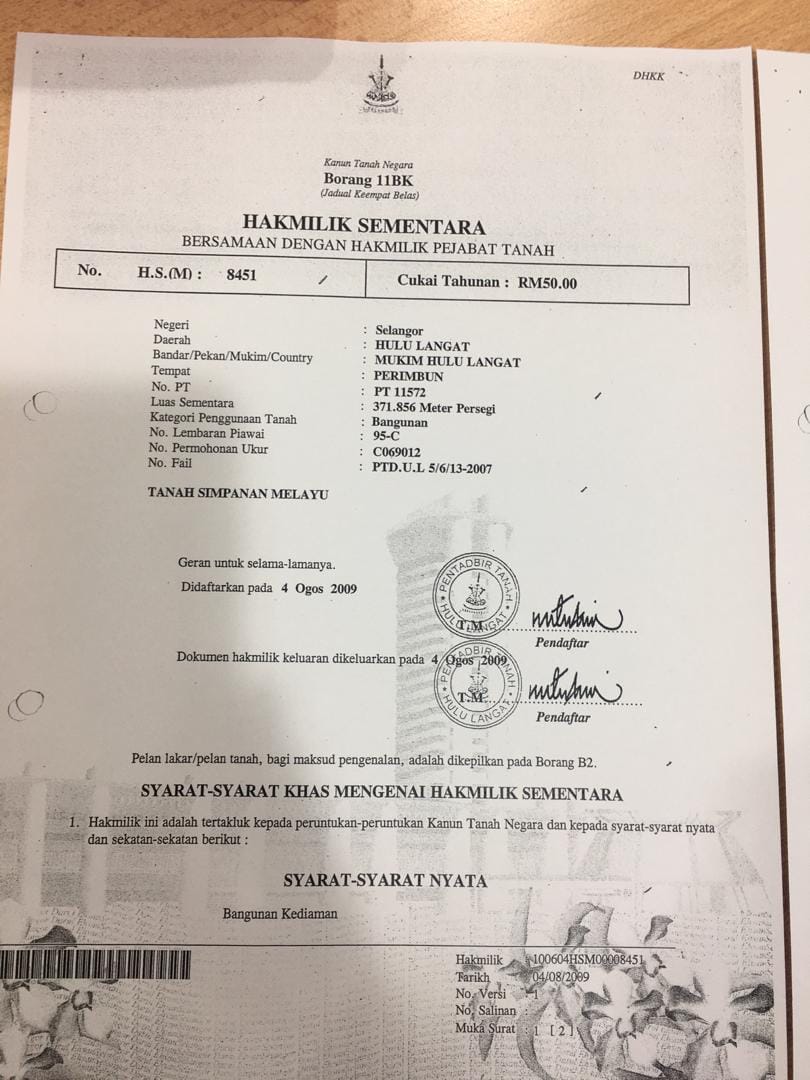 Asking price RM60 psf. Freehold Malay reserve land.